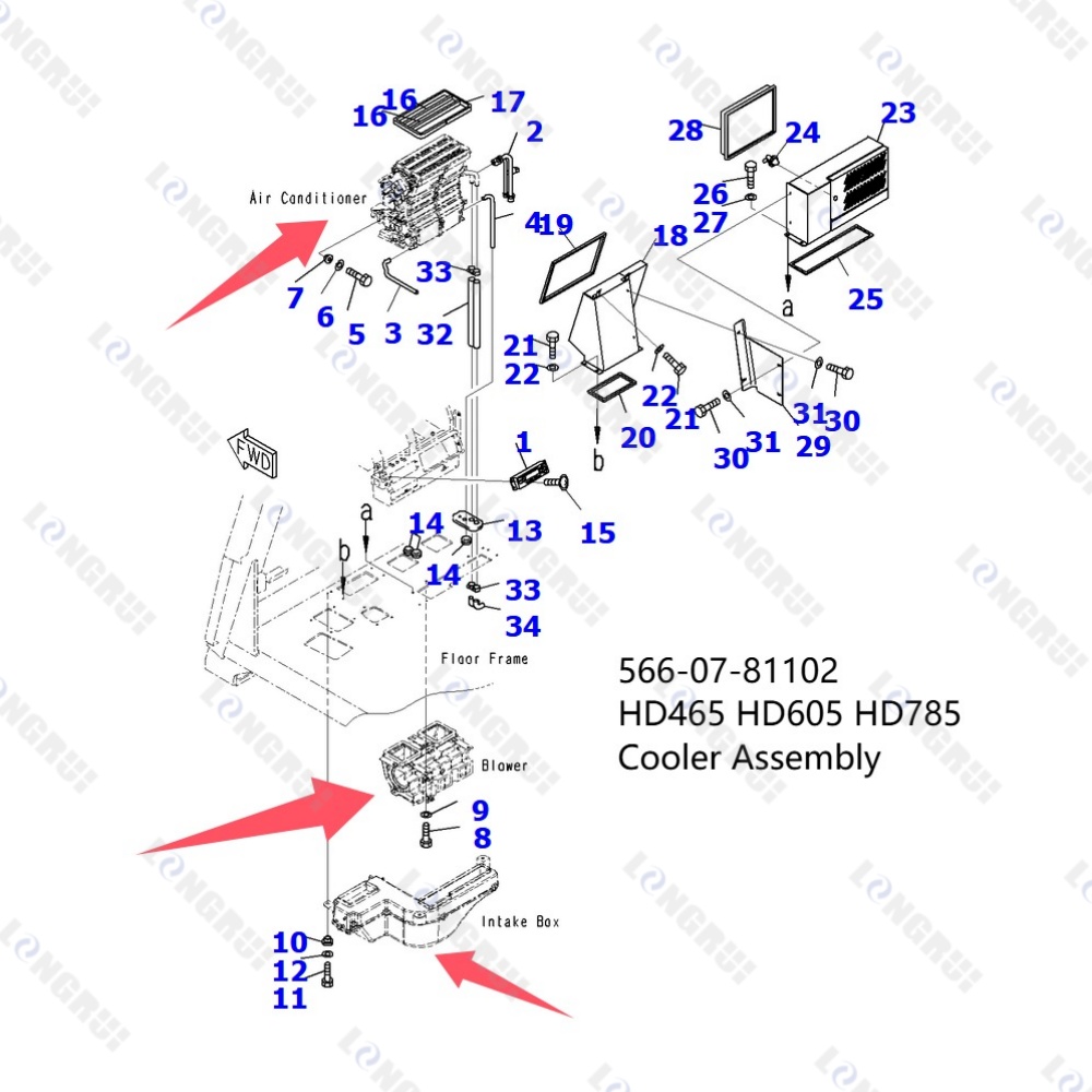 Cab Air Conditioner 566-07-81102 Fits for Komatsu HD325-7 HD405-7 HD465-7E0 HD605-7R HD785-7 Truck